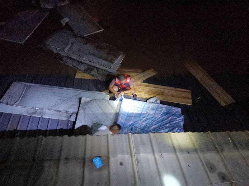 “感謝3名值班人員及時(shí)打電話通知我,否則后果不堪設(shè)想。”簡(jiǎn)敬奎說(shuō),回想起昨晚的情形,心里還是有些后怕。當(dāng)時(shí),他接到值班人員電話后,發(fā)現(xiàn)門衛(wèi)室外的洪水已經(jīng)逼近脖子,無(wú)法順利撤離,洪水漲勢(shì)又快,不一會(huì)兒,他只得爬上門衛(wèi)室頂端才能避免被水淹沒。后來(lái),洪水沖來(lái)了一棵樹,簡(jiǎn)敬奎借助這棵樹慢慢轉(zhuǎn)移到了附近一棵較高大的樹上繼續(xù)躲避,直至黃志和方華軍前來(lái)營(yíng)救。