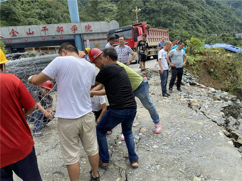 面對災情,交建路橋公司立即啟動抗洪搶險應急預案,領(lǐng)導班子成員迅即分赴各項目現(xiàn)場,奮力組織搶險救災。在茶地坎組織60余人,投入裝載機、挖掘機、運輸車、灑水車、發(fā)電機等各類機具車輛19臺,對駐地及施工便道進行清淤,全面噴施滅菌藥物進行消殺;在S104線組織80余人,投入機具、車輛25臺,開展施工現(xiàn)場清淤、交通協(xié)管、道路清洗等工作;在“8.22”水毀項目組織80余人的搶險突擊隊,成立9個搶險小組,投入各類機具車輛52臺,在G351線、S432線等塌方、水毀路段搶險救援,對青仁鄉(xiāng)邛蘆路道路進行清淤,疏通S106線將軍碑橋涵洞,埋制王家村應急涵管;在風鳴物流園組織20余人,投入機具車輛11臺,對草壩鎮(zhèn)、鳳鳴鄉(xiāng)部分道路、河道清淤、疏通;在G318線組織60余人,投入機具車輛16臺,排查災損損點,對坍塌路段進行搶修。
