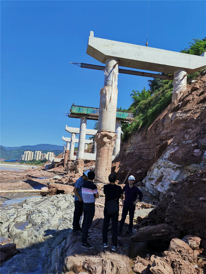 8月26日,項目公司邀請西南交通大學(xué)結(jié)構(gòu)專家到省道104線草壩至姚橋段、草壩青衣江大橋(茶地坎碼頭渡改橋)、多營青衣江大橋(搭溝漩碼頭渡改橋)等涉水工程項目進(jìn)行現(xiàn)場踏勘,檢查橋梁墩臺、防護(hù)工程結(jié)構(gòu)等情況,并就相關(guān)項目安全狀況及結(jié)構(gòu)物的加固提出了專業(yè)意見。