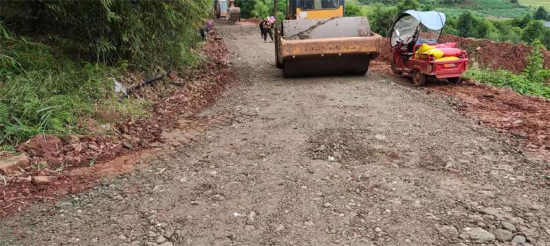 在路橋公司承接的“世界銀行貸款蘆山地震災(zāi)后恢復(fù)重建天全縣始陽至新華農(nóng)村公路”項(xiàng)目天全縣新華鄉(xiāng)柏樹村至永安村段,其村道路面結(jié)構(gòu)層差,路基窄,雨水多,晴通雨阻,對本地農(nóng)產(chǎn)品外運(yùn)造成很大困擾,嚴(yán)重影響了民眾的生產(chǎn)生活。為積極響應(yīng)市委市政府加快雅安市“四好農(nóng)村路”的部署安排,解決當(dāng)?shù)卮迕癯鲂须y、本土農(nóng)產(chǎn)品外銷滯后等問題,路橋公司天全項(xiàng)目部主動(dòng)作為,在推進(jìn)項(xiàng)目部主體建設(shè)的同時(shí),堅(jiān)持以問題為導(dǎo)向,采用“始新路”施工現(xiàn)場自拌水穩(wěn)料,為村民鋪設(shè)了一段長臨時(shí)水穩(wěn)路面,方便廣大村民順利出行,促進(jìn)當(dāng)?shù)剞r(nóng)產(chǎn)品物資交流。