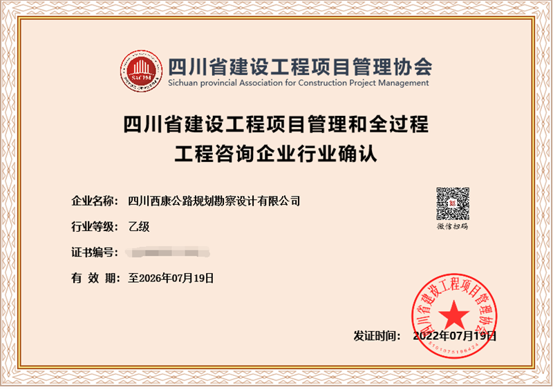 日前,經四川省建設工程項目管理協(xié)會評審,交建集團四川西康公路規(guī)劃勘察設計有限公司獲得“四川省建設工程項目管理和全過程工程咨詢企業(yè)行業(yè)乙級資格”確認,成為四川省內為數(shù)不多獲得開展全過程項目管理和咨詢資質企業(yè)之一。