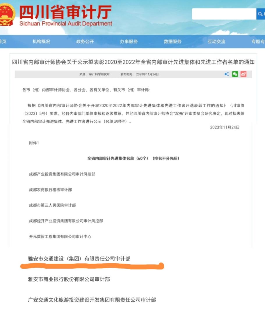 雅安交建集團黨委高度重視內(nèi)部審計工作,公司成立獨立內(nèi)審機構(gòu),由集團黨委書記、董事長直接分管,按照內(nèi)審計劃和黨委、董事會安排,獨立開展工作,并定期向黨委、董事會匯報內(nèi)審工作開展情況。近年來,公司已建立《內(nèi)部審計工作管理辦法》《經(jīng)濟責(zé)任審計實施細(xì)則》等內(nèi)部審計制度,通過全面審計、專項審計和“1+N”內(nèi)部監(jiān)督檢查工作機制,規(guī)范集團及子公司制度建設(shè),提升管理水平,助力集團創(chuàng)建“千億國企,品質(zhì)交建”。