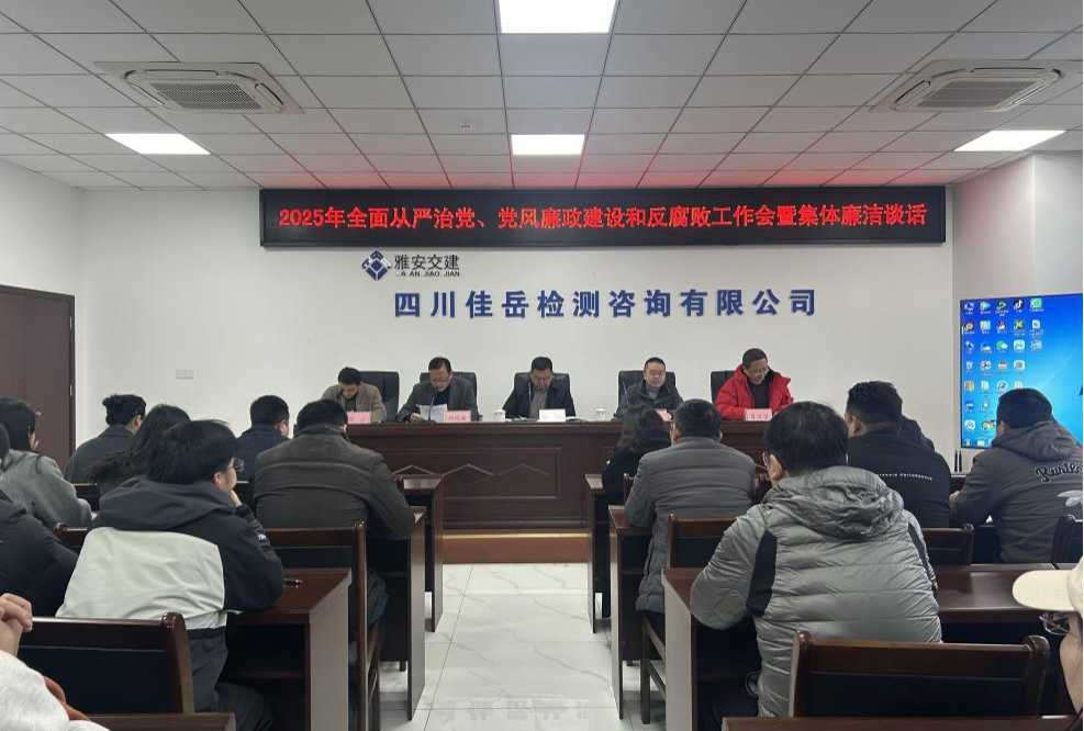 3月20日,四川佳岳檢測咨詢有限公司召開2025年全面從嚴治黨、黨風廉政建設和反腐敗工作會暨集體廉潔談話,集團黨委專職副書記張萬清、總工程師程學強參加會議并提相關(guān)要求。