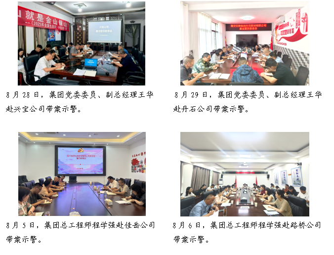 近期,雅安交建集團(tuán)組織開展警示教育活動(dòng),集團(tuán)領(lǐng)導(dǎo)班子成員深入分管聯(lián)系的子公司“帶案示警”,通過(guò)專題學(xué)習(xí)今年駐市交建集團(tuán)紀(jì)檢監(jiān)察組查處的六起典型案例通報(bào)、剖析違紀(jì)違法案例等形式,推動(dòng)紀(jì)法教育、廉潔從業(yè)走深走實(shí),引導(dǎo)黨員干部職工養(yǎng)成在受監(jiān)督和約束的環(huán)境中工作生活的習(xí)慣,做到既勤又廉、遵規(guī)守紀(jì)依法,讓“心有所畏、行有所止”成為日常自覺。
