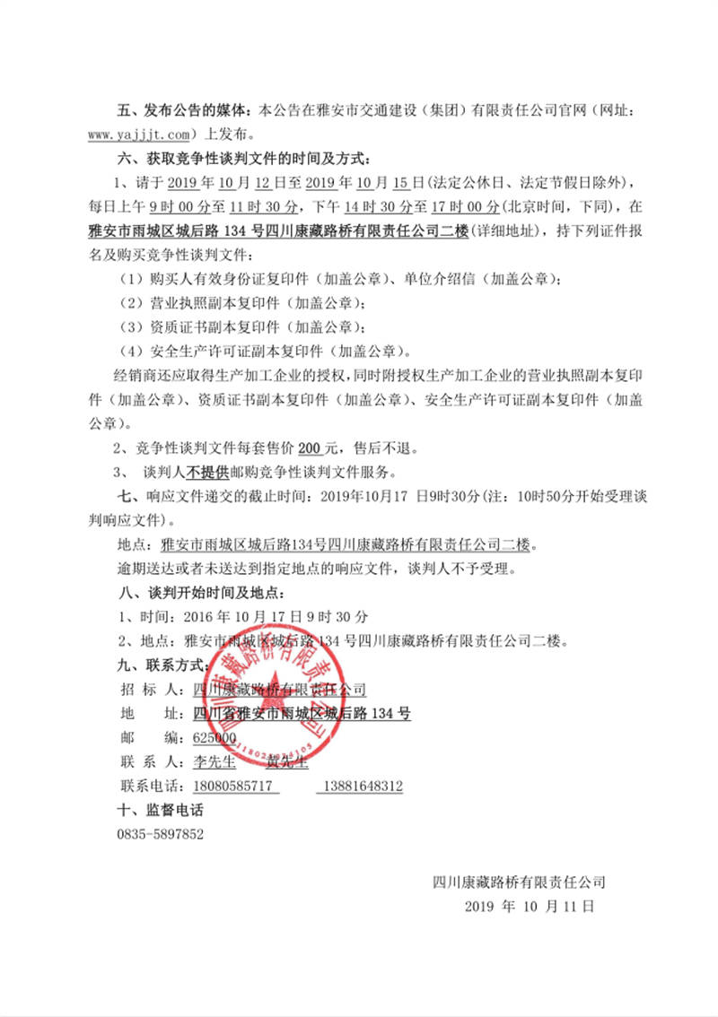 四川康藏路橋有限責(zé)任公司國道351線磽磧至夾金山段路面改造工程防護(hù)網(wǎng)采購競爭性談判公告