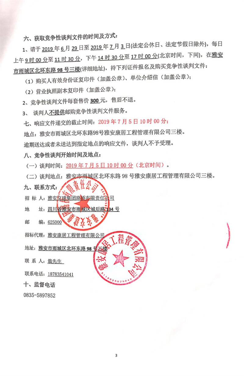 雅安交建集團(tuán)路橋有限責(zé)任公司國(guó)道351線磽磧至夾金山路面改造工程防裂卷材采購(gòu)競(jìng)爭(zhēng)性談判公告