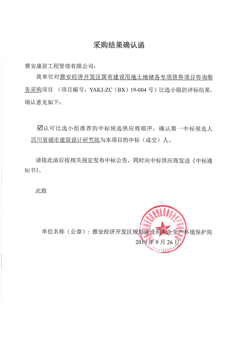雅安經濟開發(fā)區(qū)國有建設用地土地儲備專項債券項目咨詢服務采購比選結果公示