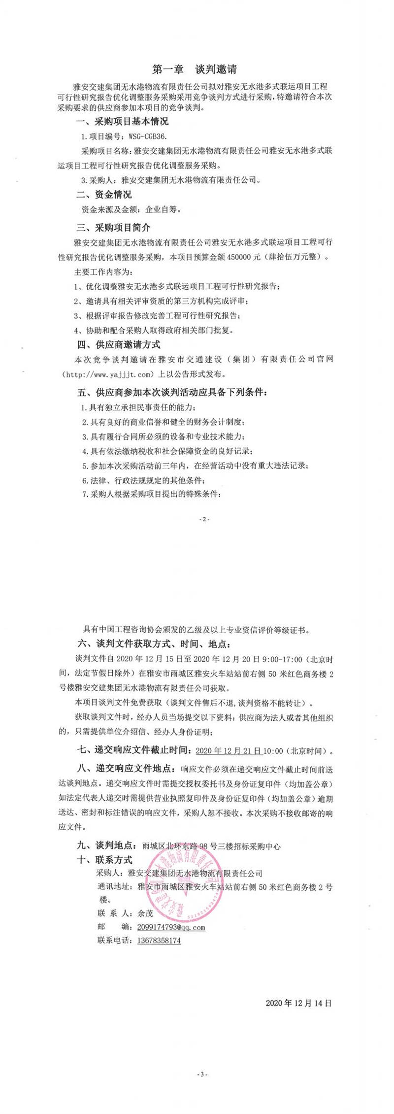 雅安交建集團無水港物流有限責任公司雅安無水港多式聯(lián)運項目工程可行性研究報告優(yōu)化調整服務采購競爭談判公告