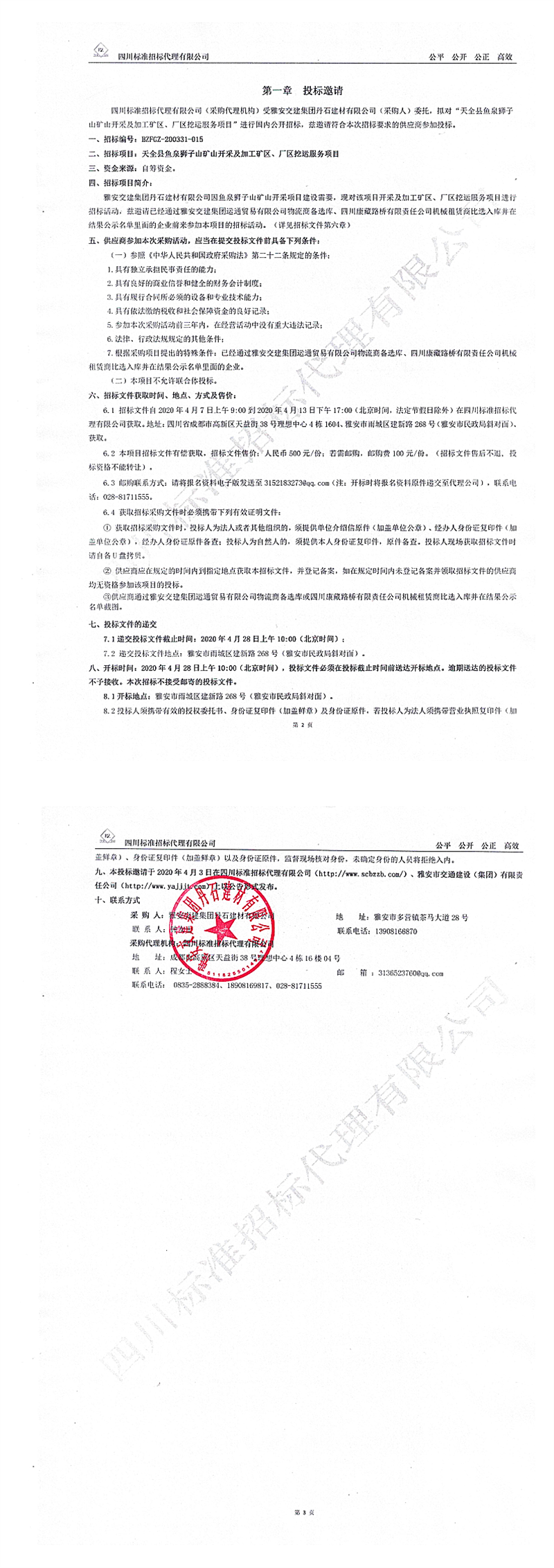 雅安交建集團(tuán)丹石建材有限公司天全縣魚(yú)泉獅子山礦山開(kāi)采及加工礦區(qū)、廠區(qū)挖運(yùn)服務(wù)項(xiàng)目招標(biāo)公告