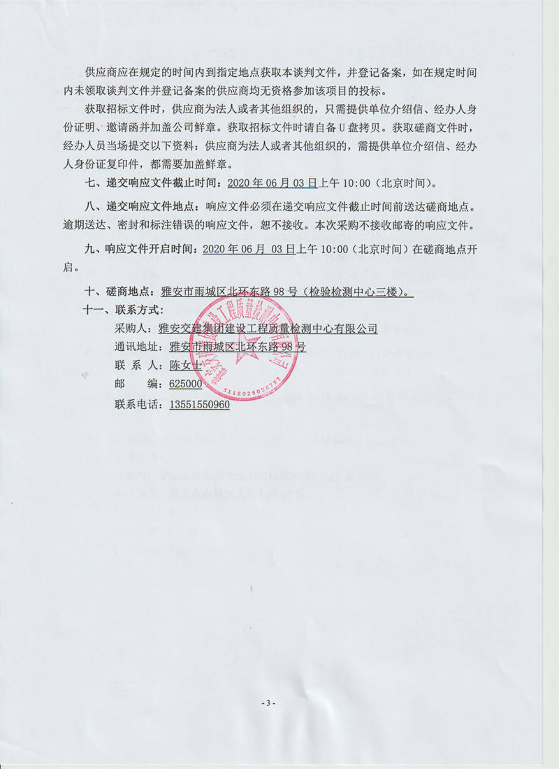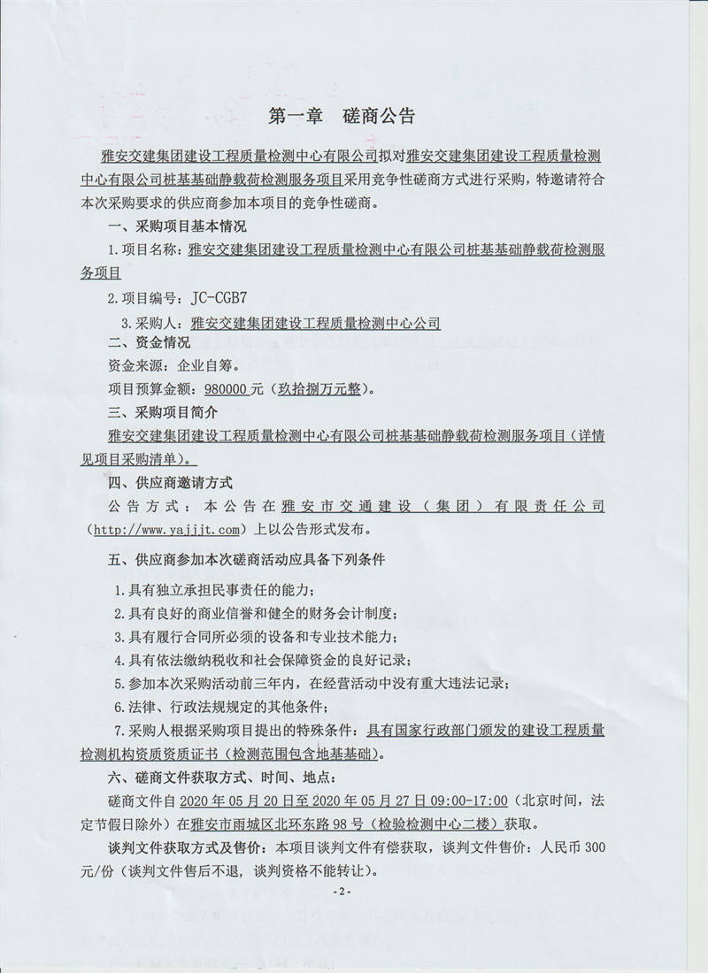 雅安交建集團建設工程質(zhì)量檢測中心有限公司樁基基礎(chǔ)靜載荷檢測服務采購項目競爭性磋商公告