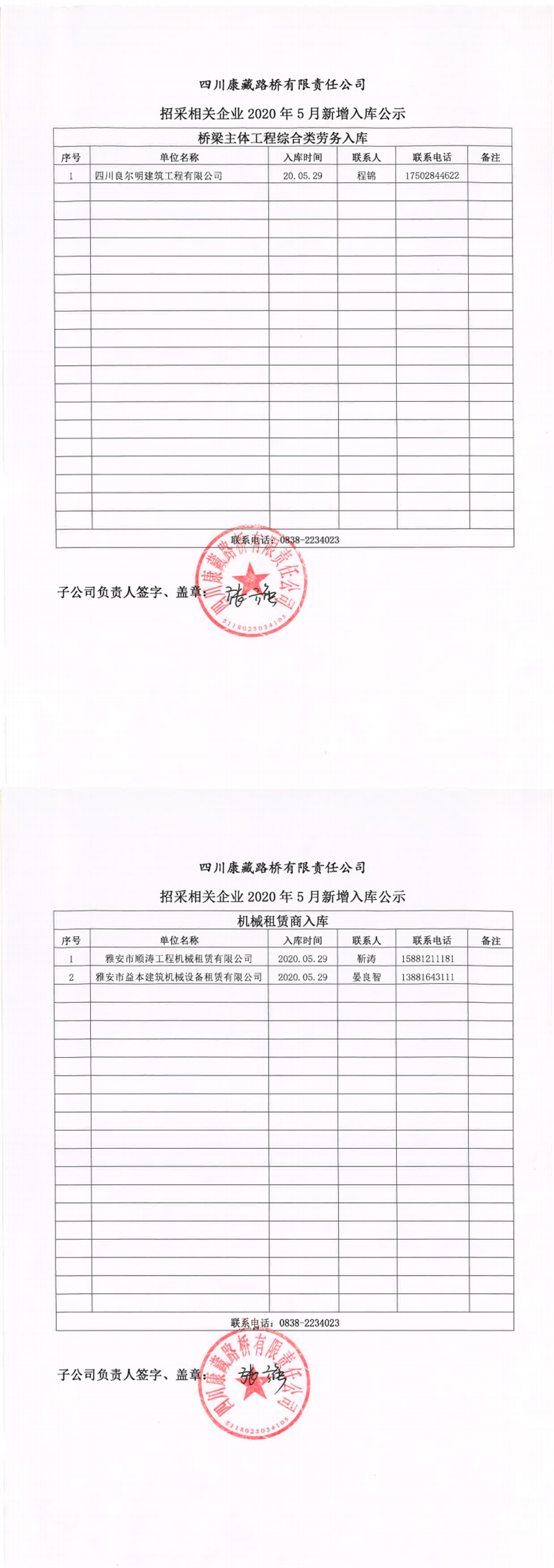 四川康藏路橋有限責任公司招采相關企業(yè)2020年5月新增入庫公示
