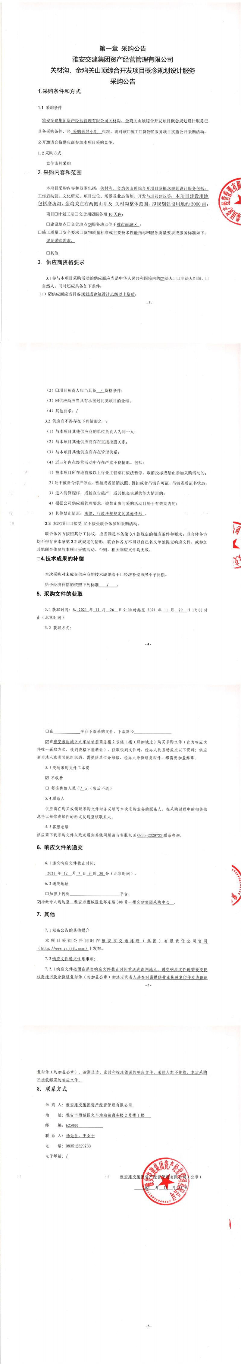 雅安交建集團(tuán)資產(chǎn)經(jīng)營管理有限公司關(guān)材溝、金雞關(guān)山頂綜合開發(fā)項(xiàng)目概念規(guī)劃設(shè)計(jì)服務(wù)采購公告