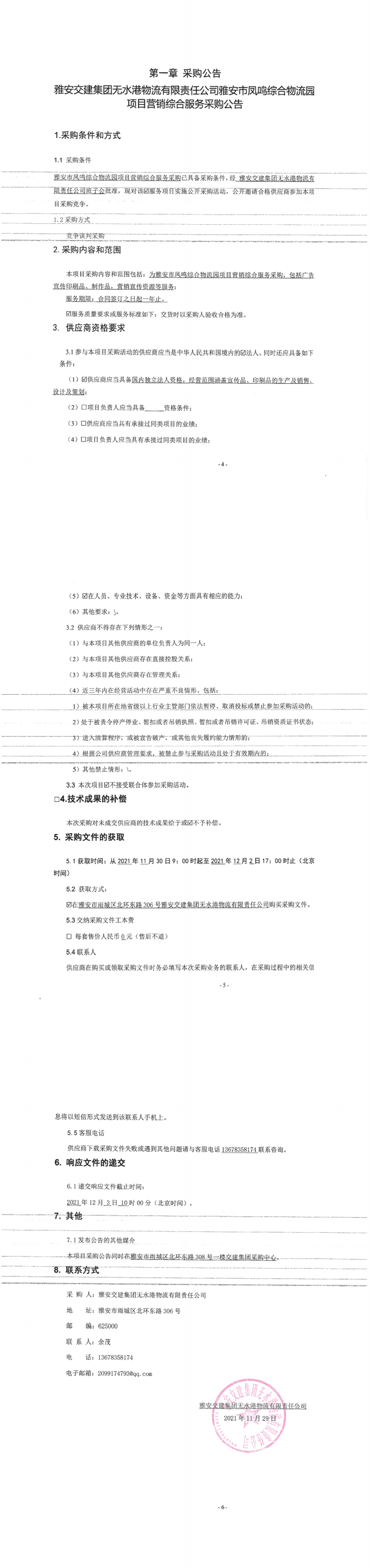 雅安交建集團(tuán)無水港物流有限責(zé)任公司雅安市鳳鳴綜合物流園項(xiàng)目營銷綜合服務(wù)采購公告