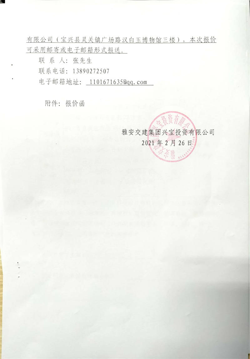 雅安交建集團興寶投資有限公司寶興縣大漁溪河道疏浚項目市場調(diào)查詢價公告