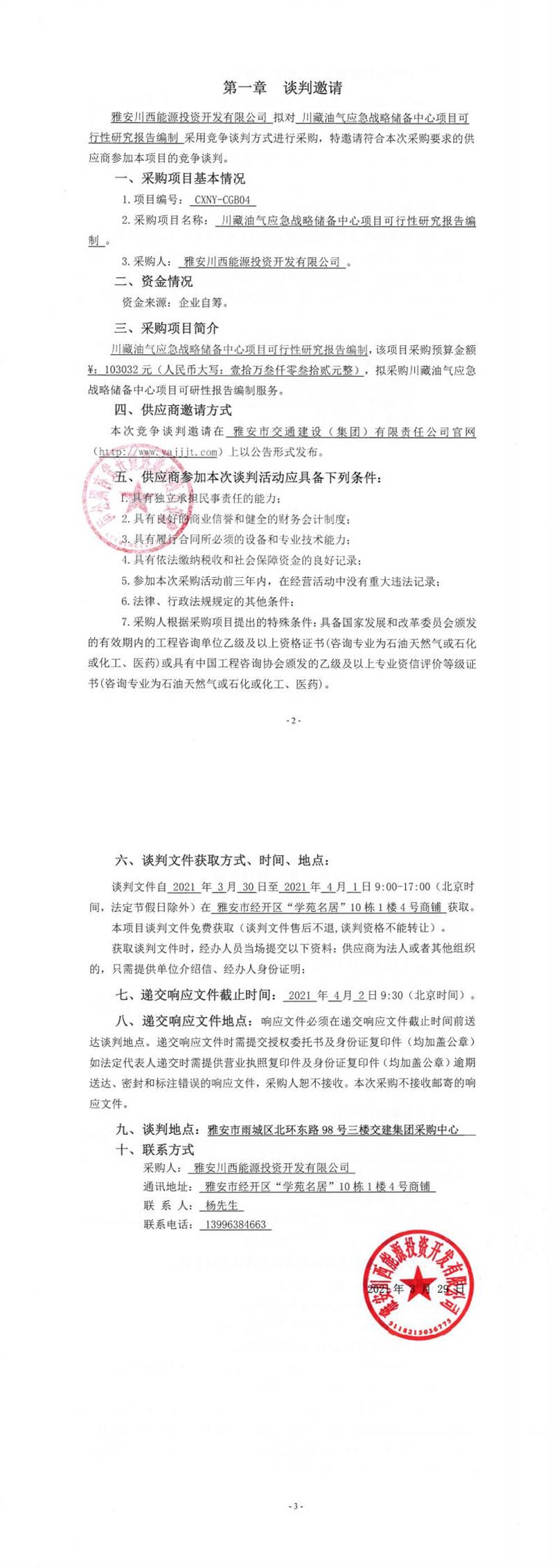 雅安川西能源投資開發(fā)有限公司川藏油氣應(yīng)急戰(zhàn)略儲備中心項(xiàng)目可行性研究報(bào)告編制競爭談判公告