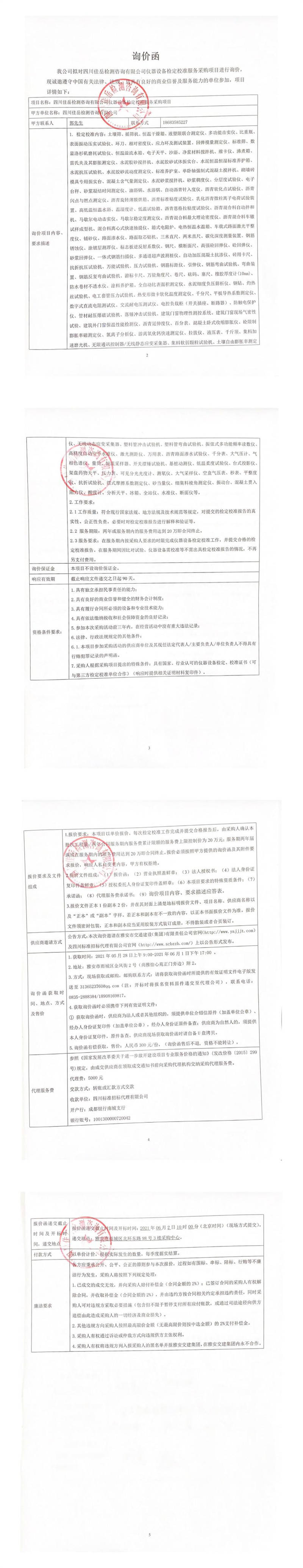 四川佳岳檢測咨詢有限公司儀器設(shè)備檢定校準(zhǔn)服務(wù)采購詢價公告