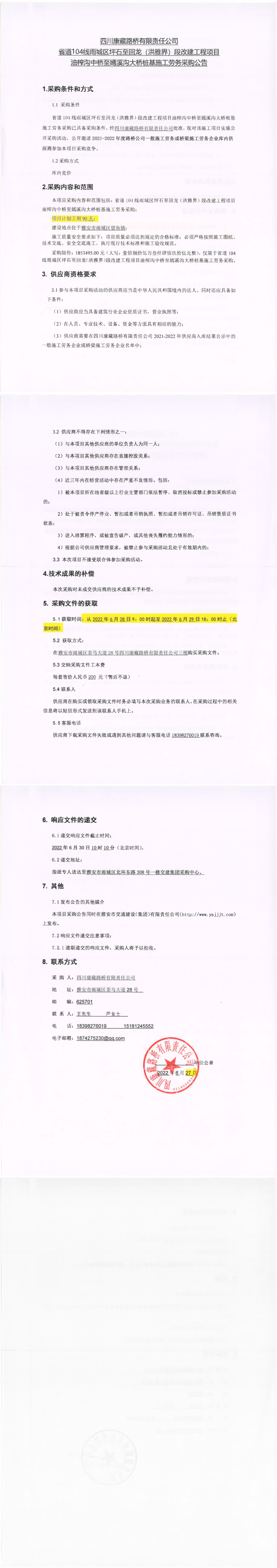 四川康藏路橋有限責任公司省道104線雨城區(qū)坪石至回龍(洪雅界)段改建工程項目錢壩大橋、望魚大橋樁基及鋼便橋工程施工勞務(wù)采購公告