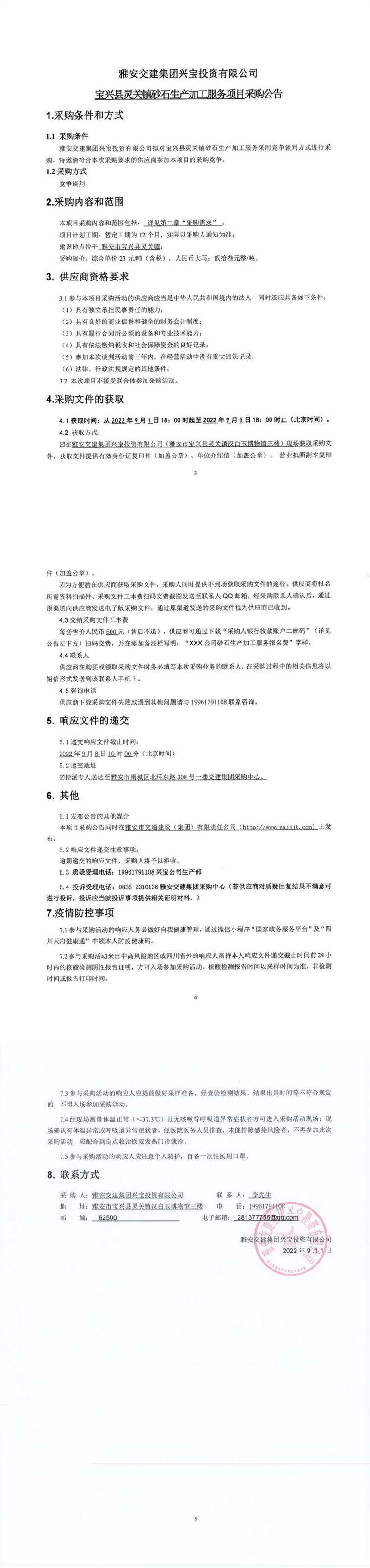 雅安交建集團(tuán)興寶投資有限公司寶興縣靈關(guān)鎮(zhèn)砂石生產(chǎn)加工服務(wù)項(xiàng)目采購(gòu)公告