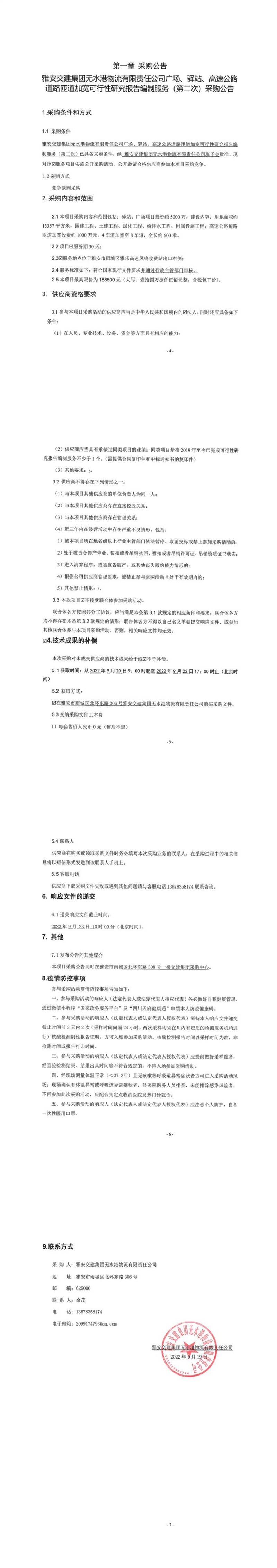 雅安交建集團(tuán)無(wú)水港物流有限責(zé)任公司廣場(chǎng)、驛站、高速公路道路匝道加寬可行性研究報(bào)告編制服務(wù)(第二次)采購(gòu)公告