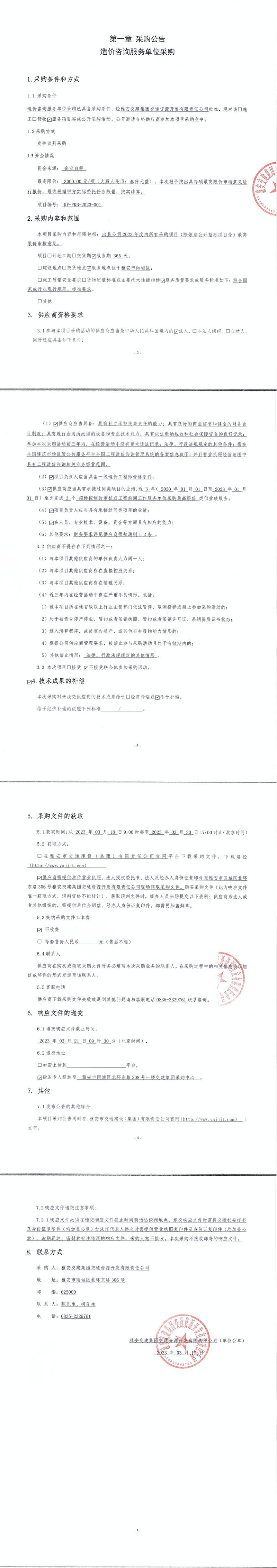 雅安交建集團(tuán)交通資源開發(fā)有限責(zé)任公司造價咨詢服務(wù)單位采購公告