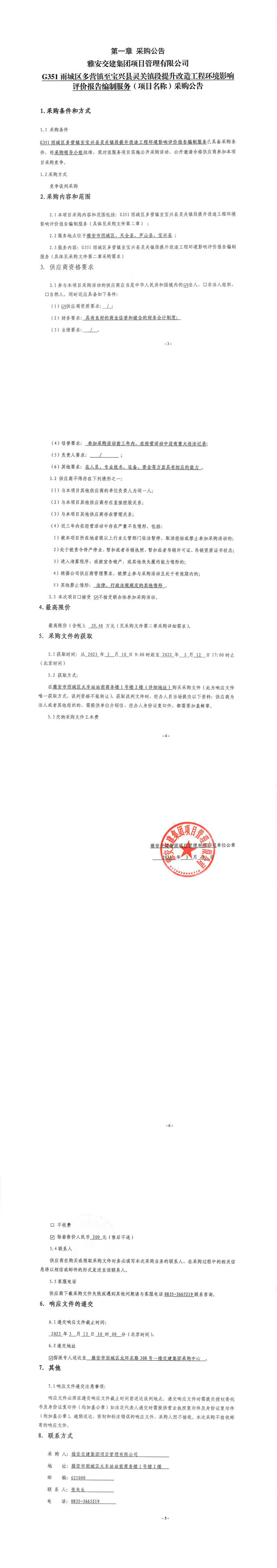 雅安交建集團(tuán)項(xiàng)目管理有限公司G351雨城區(qū)多營(yíng)鎮(zhèn)至寶興縣靈關(guān)鎮(zhèn)段提升改造工程環(huán)境影響評(píng)價(jià)報(bào)告編制服務(wù)(項(xiàng)目名稱(chēng))采購(gòu)公告