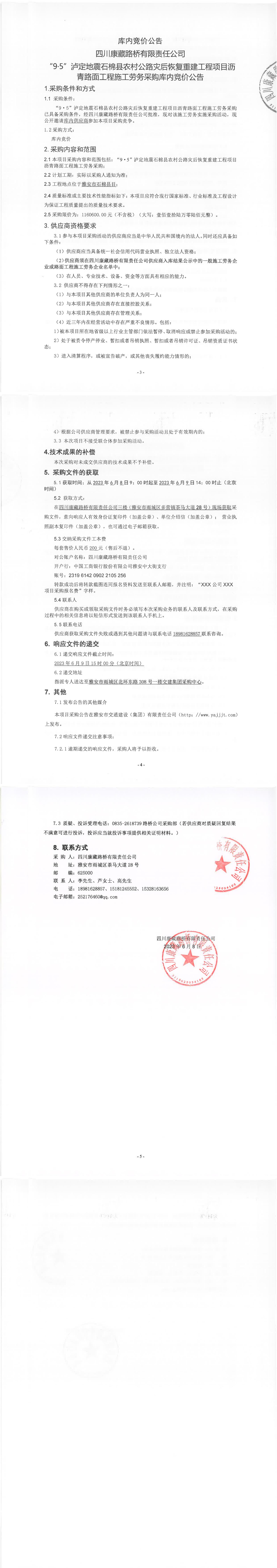 四川康藏路橋有限責任公司“9·5”瀘定地震石棉縣農(nóng)村公路災后恢復重建工程項目混凝土路面工程施工勞務采購庫內(nèi)競價公告