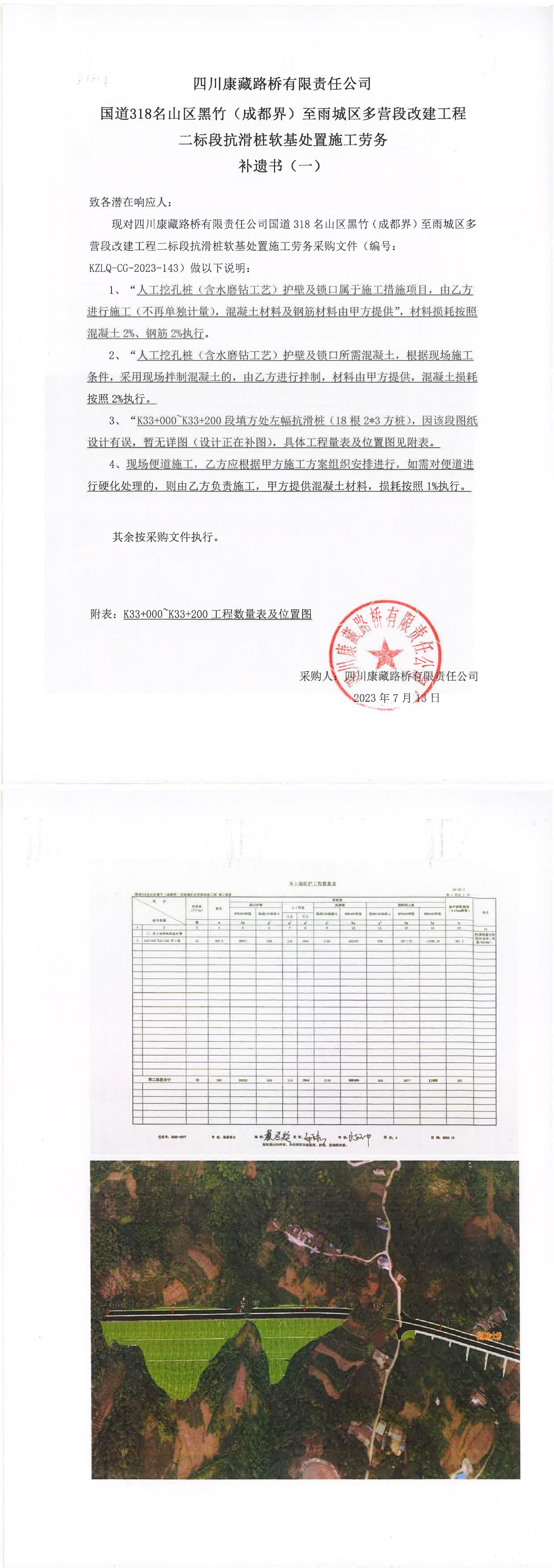 四川康藏路橋有限責(zé)任公司國(guó)道318名山區(qū)黑竹(成都界)至雨城區(qū)多營(yíng)段改建工程二標(biāo)段抗滑樁軟基處置施工勞務(wù)補(bǔ)遺書(shū)(一))