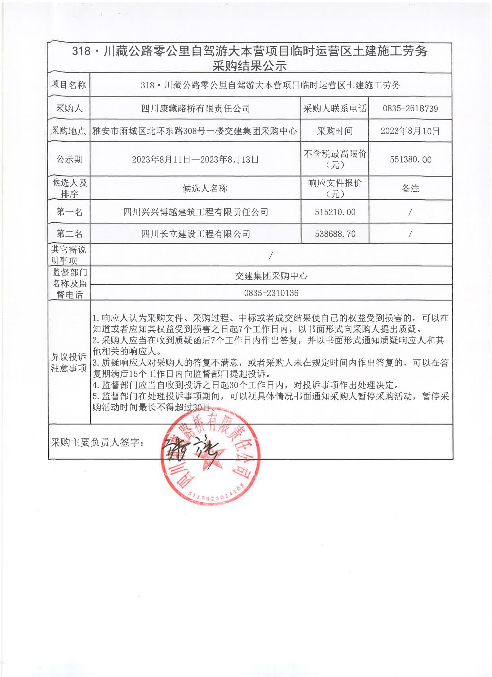 四川康藏路橋有限責(zé)任公司318·川藏公路零公里自駕游大本營(yíng)項(xiàng)目臨時(shí)運(yùn)營(yíng)區(qū)土建施工勞務(wù)采購結(jié)果公示