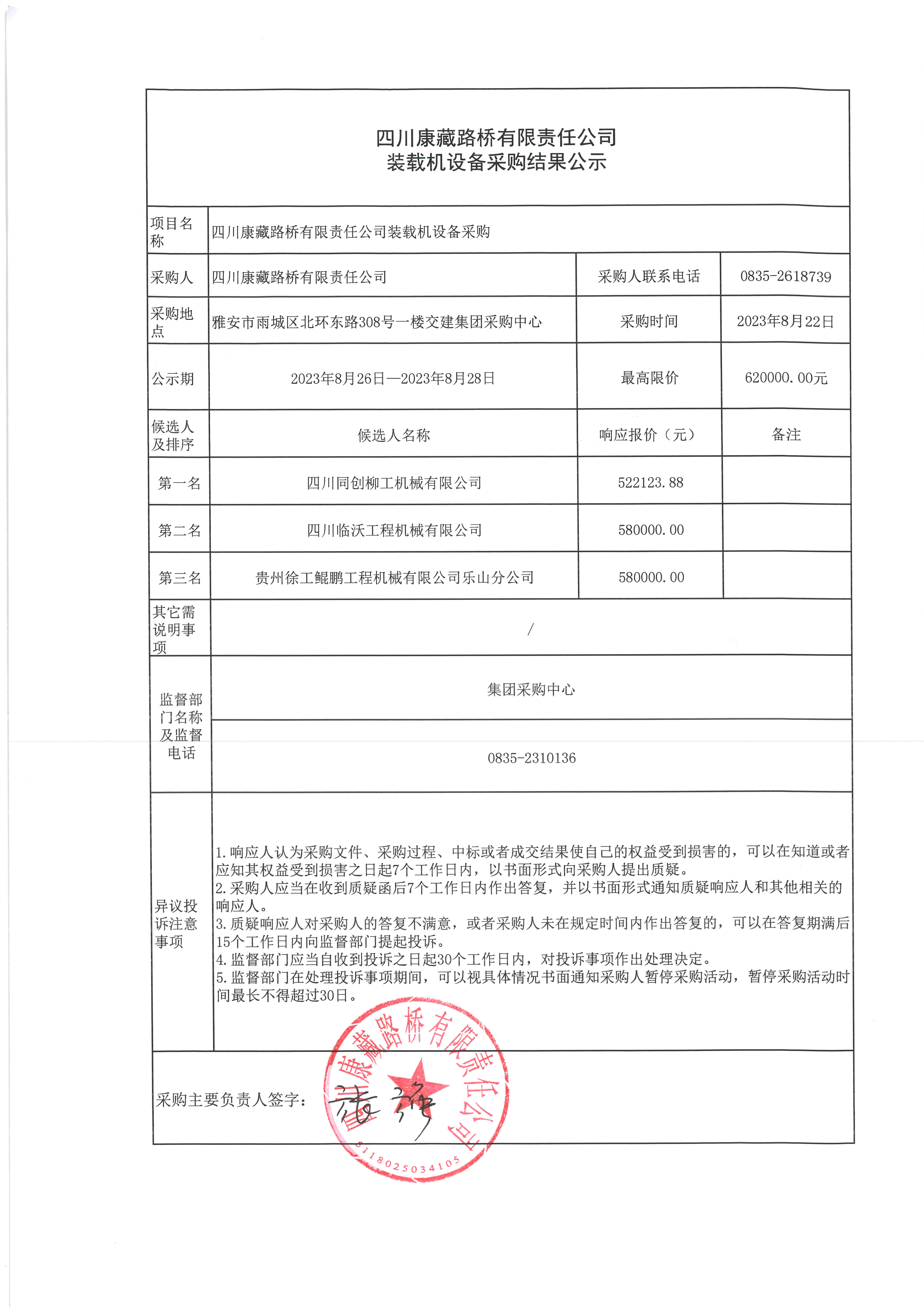 四川康藏路橋有限責(zé)任公司裝載機(jī)設(shè)備采購結(jié)果公示