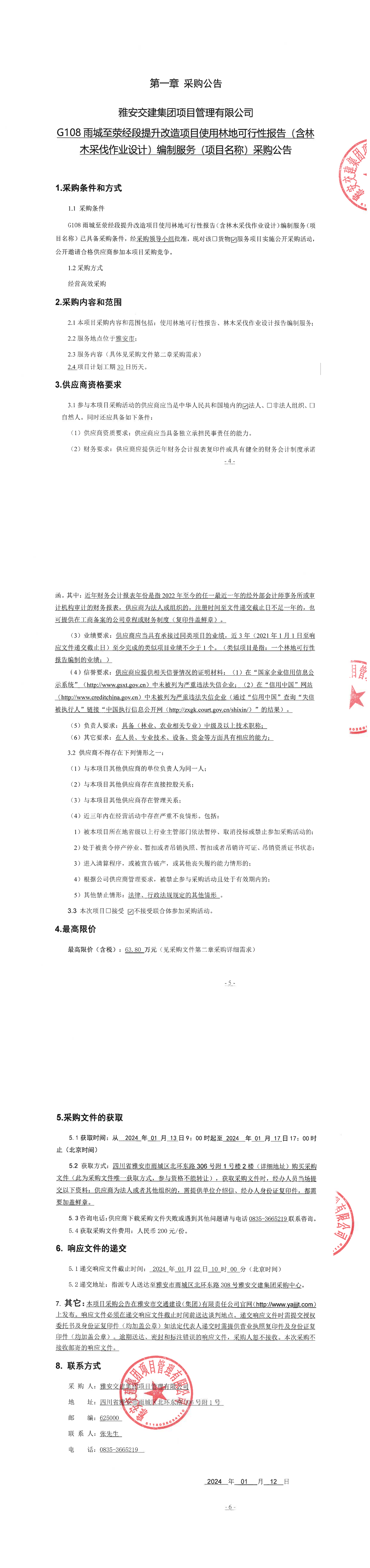 雅安交建集團項目管理有限公司G108雨城至滎經(jīng)段提升改造項目使用林地可行性報告(含林木采伐作業(yè)設計)編制服務(項目名稱)采購公告