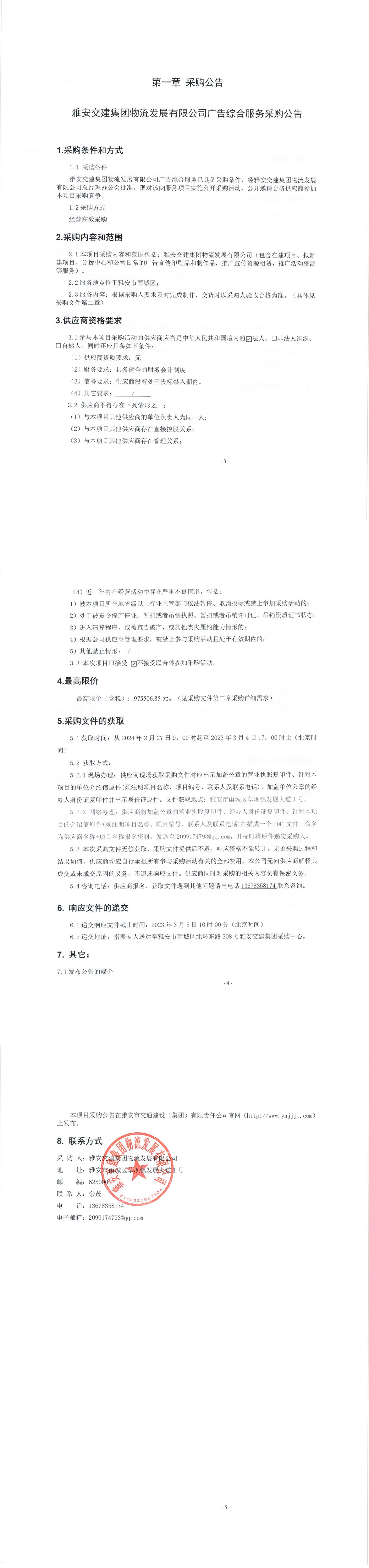 雅安交建集團物流發(fā)展有限公司廣告綜合服務(wù)采購公告