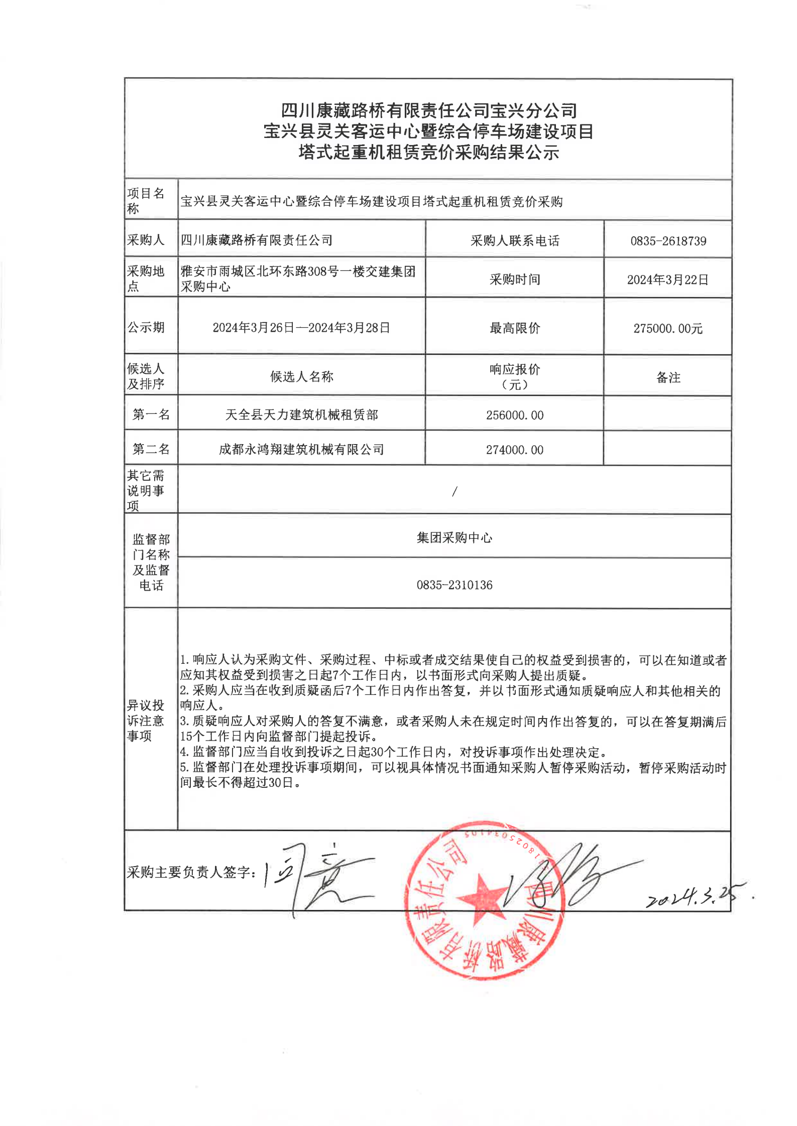 四川康藏路橋有限責(zé)任公司寶興縣靈關(guān)客運中心暨綜合停車場建設(shè)項目塔式起重機租賃競價采購結(jié)果公示