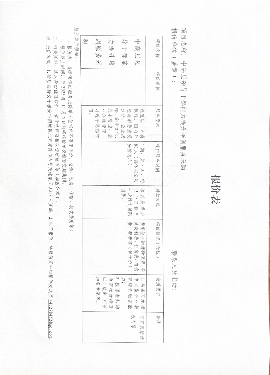 中高層領(lǐng)導(dǎo)干部能力提升培訓(xùn)服務(wù)采購(gòu)詢價(jià)邀請(qǐng)