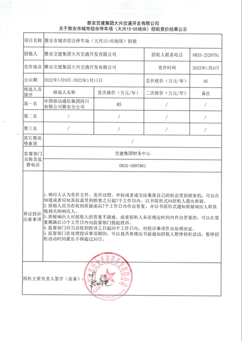 ´óÅdé_°l(f¨¡)¹«Ë¾êPÓÚÑŰ²ÊгÇÊоCºÏͣ܇ˆö£¨´óÅd15-05µØ‰K£©ÕÐ×⸂ƒr½Y¹ûµÄ¹«Ê¾