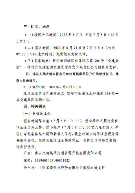 雅安交建集團(tuán)交通資源開(kāi)發(fā)有限責(zé)任公司雨名快速通道(名山服務(wù)區(qū))4、5號(hào)樓招租公告附件