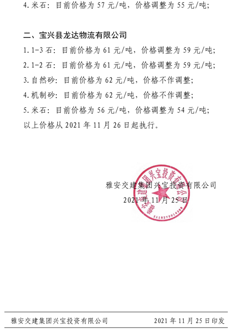 ÑŰ²½»½¨¼¯ˆF(tu¨¢n)ÅdŒš¹«Ë¾êP(gu¨¡n)ÓÚÕ{(di¨¤o)Õû³ÉÆ·ÁÏäNÊÛƒr(ji¨¤)¸ñµÄ֪ͨ£¨2021.11.23£©