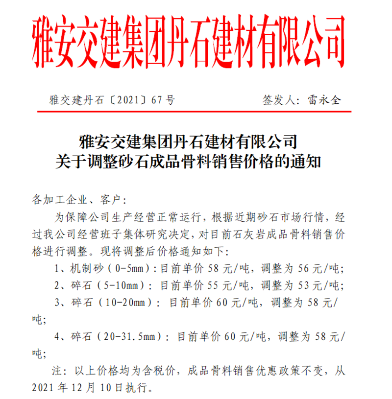 ÑŰ²½»½¨¼¯ˆF(tu¨¢n)µ¤Ê¯¹«Ë¾êP(gu¨¡n)ÓÚÕ{(di¨¤o)Õûɰʯ³ÉÆ·¹ÇÁÏäNÊÛƒr(ji¨¤)¸ñµÄ֪ͨ£¨2021.12.9£©