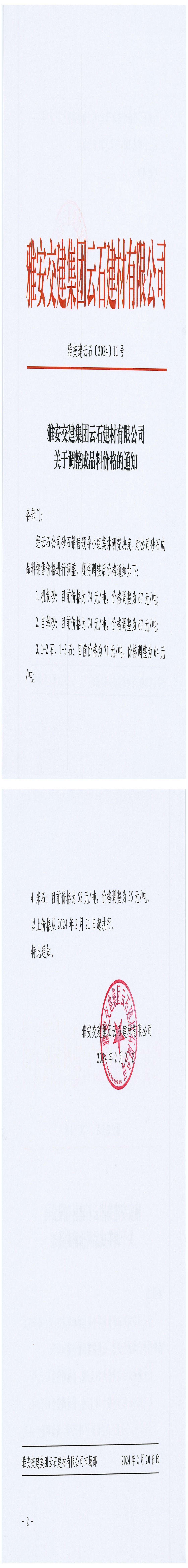 ÑŰ²½»½¨¼¯ˆF(tu¨¢n)ÔÆÊ¯½¨²ÄÓÐÏÞ¹«Ë¾³ÉÆ·Áσr¸ñÕ{(di¨¤o)Õû¹«¸æ£¨2024-2-21£©